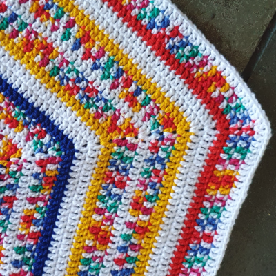 This blanket features a rainbow-printed yarn with pink, blue, mint, and lemon accent colours. The colours used are pretty pastels, with no colour being dominant. That way it is gender neutral, making it an ideal gift for a boy or a girl. The blanket is easy care and can safely be washed in your washing machine and dried in a tumble dryer.